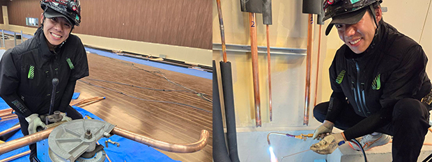 弊社は、冷凍設備、冷媒配管工事店として、色々な現場で工事を経験してまいりました。その中で培った能力、技術を活用しながら、更に技術向上に努めております。お客様に喜んで頂ける仕事を目指し、迅速、正確、堅実な仕事をします。